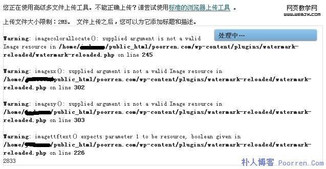 WP教程:安装Watermark_Reloaded插件导致的错误