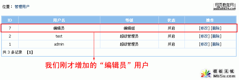 2、增加用户后,返回管理用户,我们会看到刚才增加的“编辑员”用户,如下图: