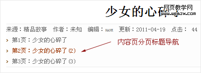 举例来说吧,有一个用帝国CMS做精品故事网的朋友,想实现如下图所示内容页分页标题导航。