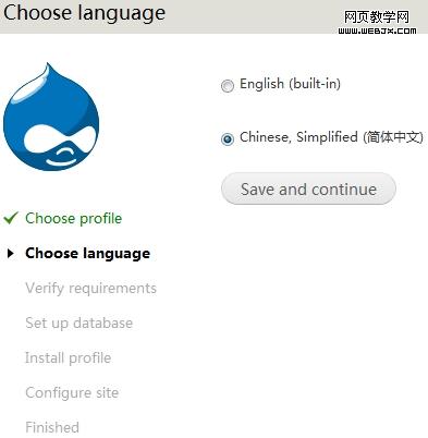 在本地打开浏览器,输入http://localhost/drupal,进行安装。