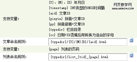 DEDECMS中添加栏目时,亦可定义文章内容页及列表页命名规则。
