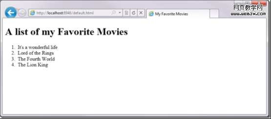 现在可以看到,包含电影的<ol><li>列表现在包含在<div>标记中。如果现在查看该网页,会发现与之前没什么不同。这是因为<div>标记是一个逻辑分隔线。它没有任何物理外观。