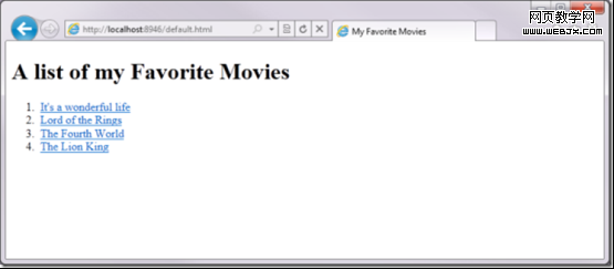 如果运行网页,您将看到列表上的元素将使用熟悉的超链接样式,也就是所谓的蓝色下划线: