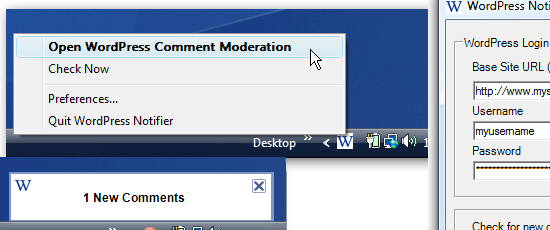写博客一个非常重要的组成部分就是管理读者的评论并及时对评论做出回复。WordPress Comment Moderation Notifier 栖身于你的系统托盘中,当有新的评论出现时,它就会通知你。根据你所做的设置,(它在设定的时间间隔内检查是否有新的评论),这样你就可以更加及时地管理和回复评论,这将会让你更受读者爱戴。