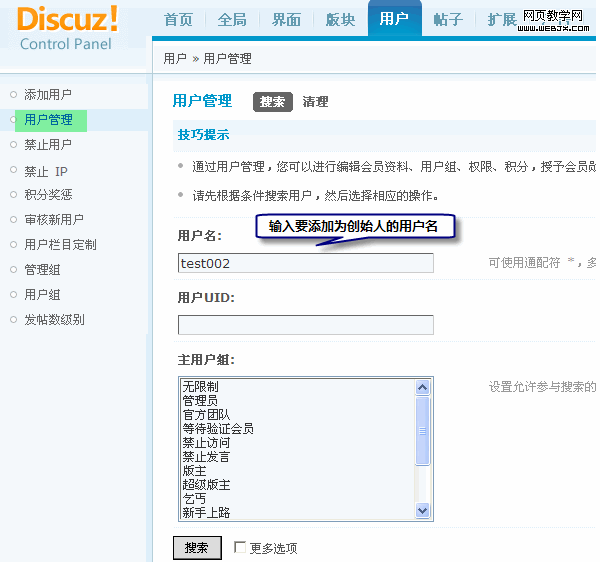 Discuz!设置技巧:添加创始人