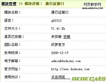 然后进入DedeCMS后台,模块——模块管理——上传新模块