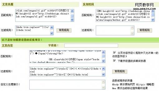 也许是老天看我太辛苦了吧,刚想睡觉,突然我一下睡意全无,我太兴奋了,我看到了,看到了分页被我采集了。好了,说了这么多,还是开始进入正题了。直接看图。如果看不懂请打开源网址,查看源文件,和我的教程比较。 开始选着左边的采集,然后打开采集节点管理,添加新节点,选着普通文章。1、 文章列表页采集节点名称:自己根据你的网站目录和采集内容结合起来。网址:http://webdesign.chinaitlab.com/List_1399_(*).html 是有规则的网址列表。 如果有不规则追加就好了。http://webdesign.chinaitlab.com/List_1399.html如果只有一页或几页没有规则就直接写在下面手工指定网址就好了。