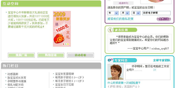 在宝宝中心中国分站,可以看到集成了SupeSite后台发布的资讯、X-Space中的原创博客,和Discuz!论坛的优秀内容。其中,网页排列第一的栏目“本周编辑推荐”相当于新闻资讯和专题策划内容,可以在SupeSite后台编辑发布。