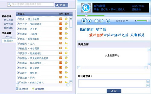 对于安装使用了康盛创想(Comsenz)旗下的UCenter Home的站长来说,这一问题可以迎刃而解,只要安装了漫游(Manyou)开放平台中的“酷狗音乐盒”应用,无论是在线听自己喜欢的经典老歌,还是与朋友分享流行金曲,都是个不错的选择。