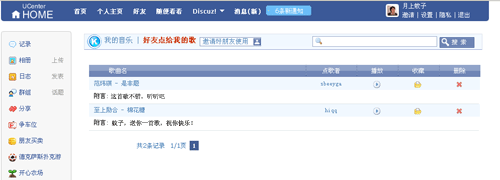 除了自己找寻喜欢的歌曲,还可以将歌曲点给朋友听。看,这些就是朋友给我点的歌,怎么样?歌曲除了欣赏之外,还有和SNS站点上的朋友们沟通感情的功能,没准哪个朋友和你的音乐品味相同,以后就有更多话题可聊了。