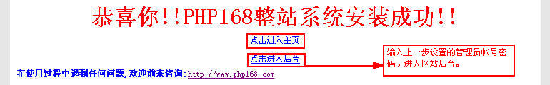 | 五、安装成功 安装成功,可以直接进入网站前台,输入上一步设置的管理员帐号密码,进人网站后台。 |