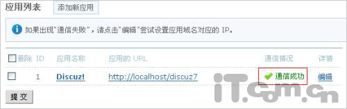 再到 UCenter 后台 => 应用管理,即可看到下图所示: