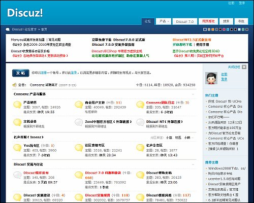为了让更多的朋友了解Discuz! 7.0的模板设计,笔者特别截取了部分官方典型模板风格界面与大家分享。