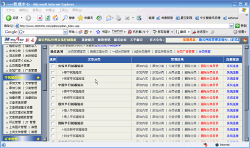 答:这是因为新云CMS建立大类和子类时没有确认关联,比如目前的频道分类情况会如下: