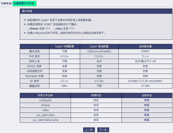 6、进入检查服务器环境和文件权限的页面,如下图。