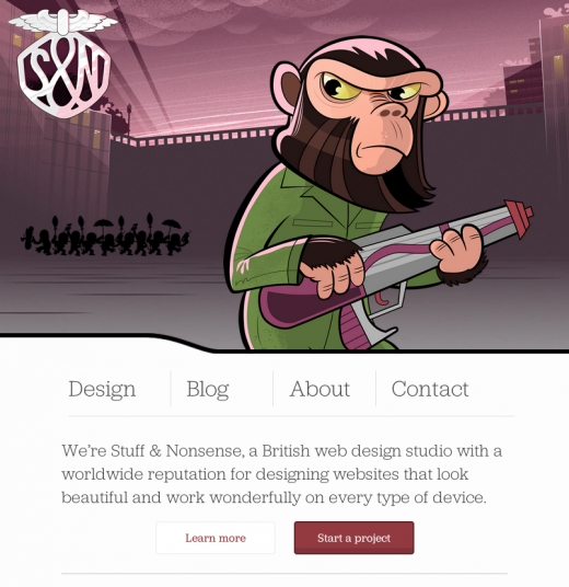 我个人是个性化排版的支持者,自然也希望看到越来越多的网络设计尝试个性化的风格,其中比较突出的一点是个性化字体的增多:用自己独特设计的字体代替标准印刷体,让设计更加独特。比如“Stuff and Nonsense”这个网站提供设计字体服务,让字体在体现个性的同时保留专业印刷风格。我们期待着在2014年设计出的网站能够更多地从细节体现个性。
