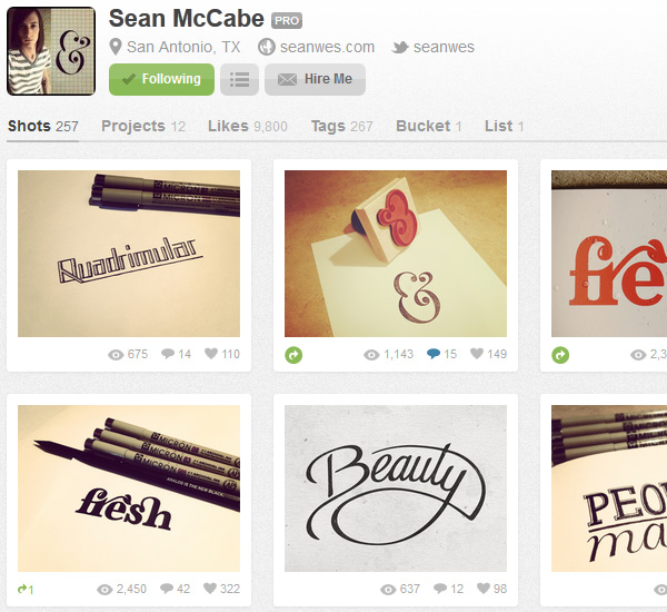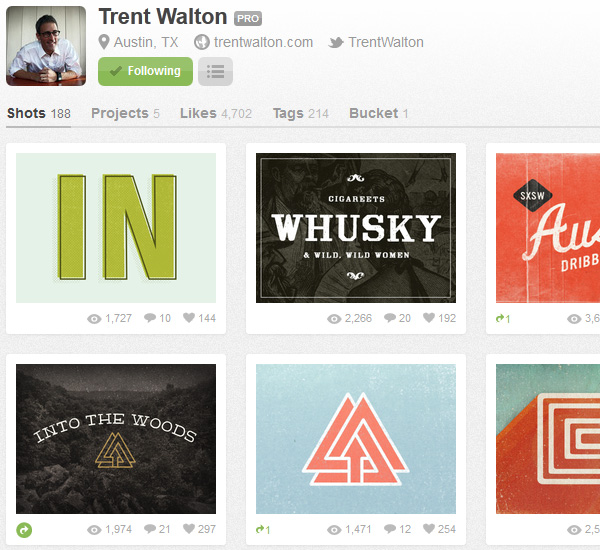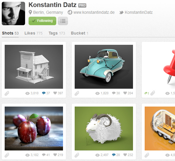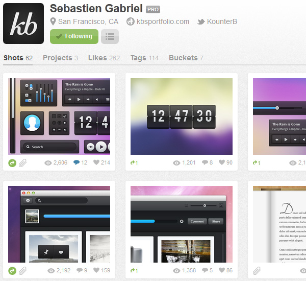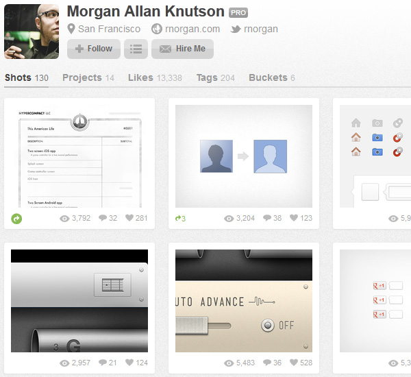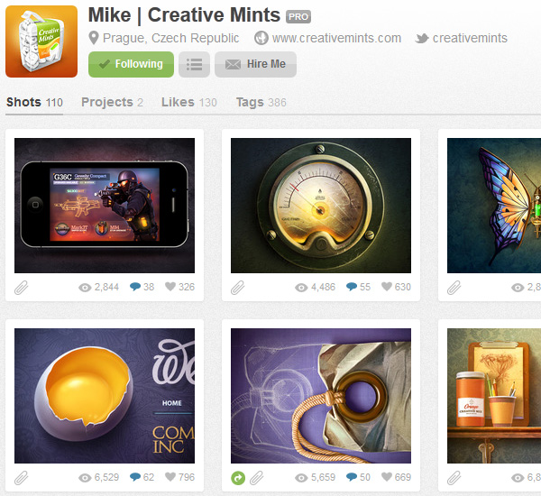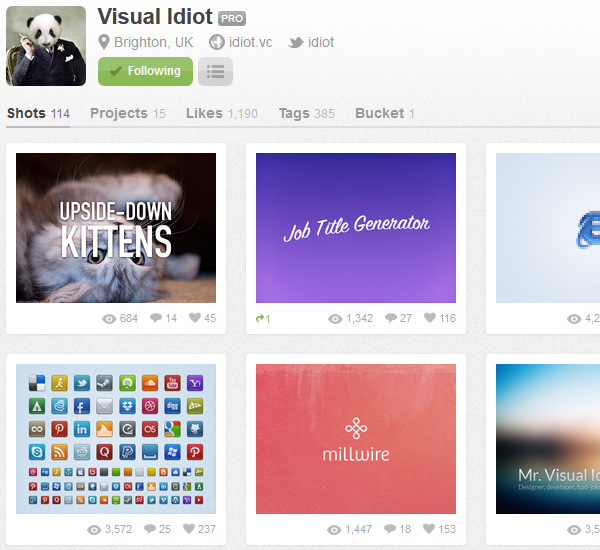 Dribbble在功能上与推特相似,但是他主要集中在设计方面。比如说,在推特上你会问别人”你在干嘛呢?”,而在Dribbble上这句话就变成了”你在做什么工作呢?”。