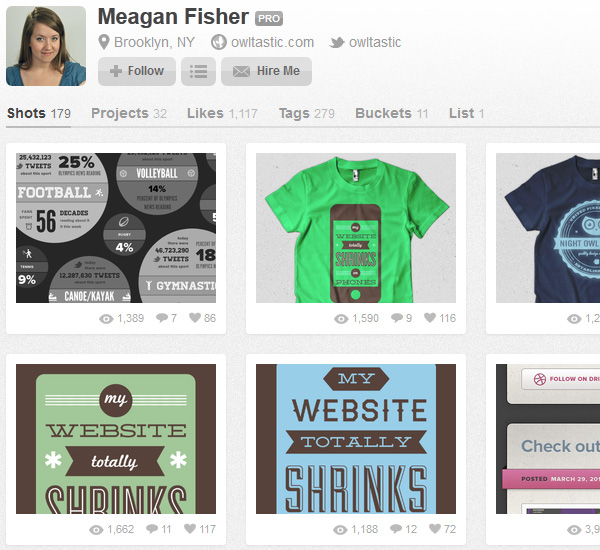 一些创意专业人士比如说插图画家、网页设计师、平面设计师以及图表设计师会在Dribbble上分享自己的作品,提高自己的技术,发现志趣相投的同志。从用户的使用情况中我们不难看出Dribbble的用途:这是一个特殊社交网络,他允许网页设计师和其他的创意专业人士有选择性的分享自己的工作。