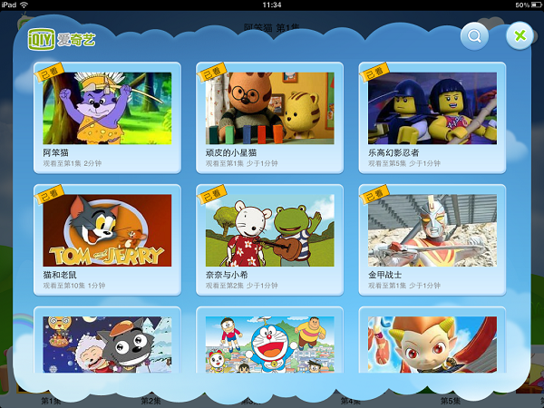 不再一一以界面案例举例说明,这些只是基础知识,最重要是掌握儿童的操作行为规律,更多内容请关注iPad版奇艺动画片的界面设计。