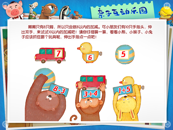 个别电子书在设计时不是有意地避免这个问题,而是利用儿童的探索性操作触发动画效果,鼓励儿童点击界面中的物体,增加的界面的趣味性,但这种设计的实现成本很高。