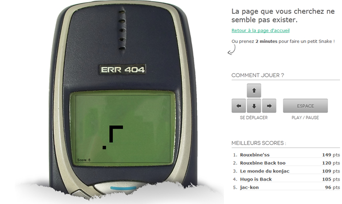 一个自定义的404错误页面将鼓励用户在您的网站上停留更长的时间。这种页面必须容易理解,友好(保持网站的整体感觉)以及有一些互动。你会看到下面的例子中,有的网站会在404页面中添加用户可以参与的小游戏。