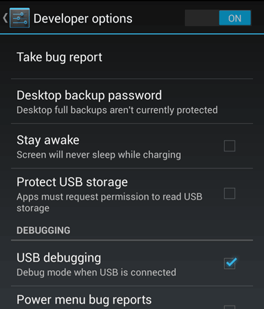 手机用 USB 线插到电脑上,在手机找到“设置”,选择“开发人员选项”,确保“USB 调试”选上。如果它已经选上,而你以前从未用过 USB 调试,取消选择,重选一次,确保它有此计算机的 MAC 地址。