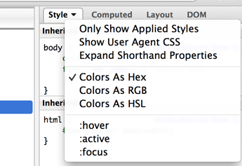Firebug,Firefox 和 Safari,显示在 DOM 检查器的顶部。