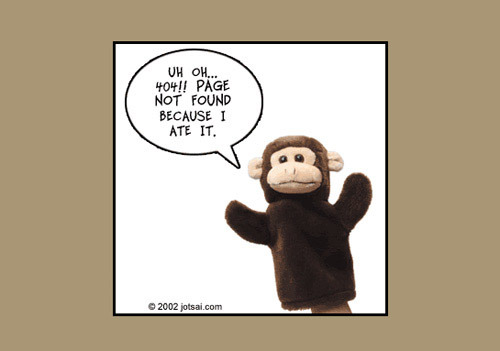 Jotsai中让人会心一笑的404小图片,页面没有找到,布偶说因为我把它吃了。