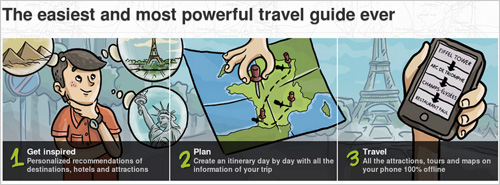 Tourist Eye 用三幅连环画解释自己的产品功能。