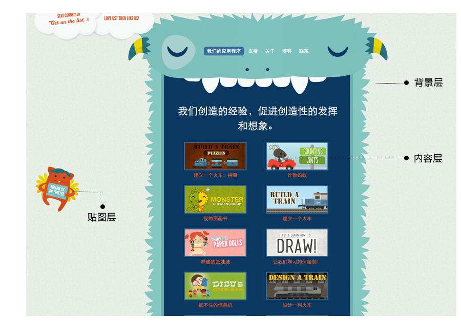 内容层的展现是最主要的,无论背景层和贴图层有多少花哨,在设计师设计过程中,内容层对用户的展示是最优先的