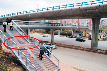 上图为人行天桥,行走在这样的天桥上面或许你并不觉得很累,因为它设置了缓冲区(图中红色圈),它把很长的台阶分割成较短的两段,让行人更易接受,也减缓了心理的压力和恐惧感。登山的台阶也是同样设计,试想下如果取消缓冲区,从山底建个台阶直达山顶,会有几个人登这座山呢,行人只会望而却步。