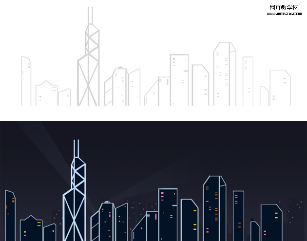 然后我确定了用城市建筑来表现,我开始在网络上搜索几个主要城市的地标性建筑,然后进行简化和提炼,把建筑的主要特点进行勾勒.以香港为例: