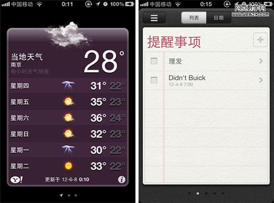 平铺页面,顾名思义就是一张或者一叠纸片,平铺展示给用户,用户通过左右拂动来切换不同的页面,它适用于没有信息层级,没有组织架构,且每个页面的界面类型一致的应用,一般在短小精炼的功能工具性应用较为常见,比如IOS自带的天气预报。平铺页面模型的优点在于“页面”元素的数量和顺序可以随意改变,且分页标签高度只有6px,可供内容展示的区域大;缺点在于页面数量不能太大,否则浏览起来麻烦,用户还需记得哪个“点”代表什么内容;