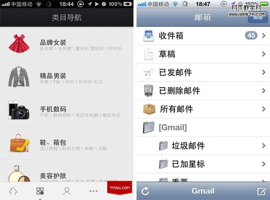 树形列表形式的导航模型在邮件系统比较常见,它将每一级别的功能通过list列表形式展现,点击之后展开下一级的lis列表,如此类推直到最终的功能展现界面。这种导航模型的优势在于可扩展性大,能应对具有大量的类别、功能和项目的应用,比如购物分类等,这种list的组织形式在web中比较常见,用户容易理解,并且可满足用户自定义列表的需要,比如对列表进行新增、删除、排序等,微信的应用插件模式也采用了列表来展现。树形列表的缺点在于层级深,父级的所有其它列表在子列表中不可见,必须要返回到上一级,来回返回比较麻烦,往往从一个子功能切换到另一个子功能时需要在漫漫路途上“奔波”;