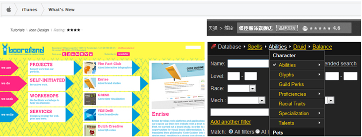 告诉用户下面的内容都是讲itunes,右边的itunes的页面菜单导航告诉用户itunes页面的内容分类,其中不一样状态的what’s new