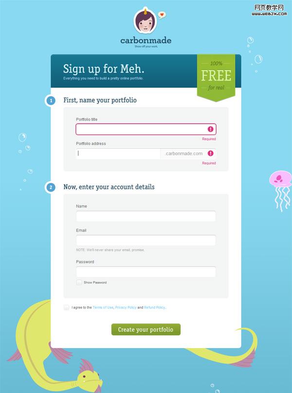 网页设计:WEBJX收集优秀的网页表单设计例子(2)