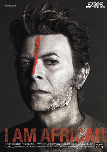 共情设计(Empathic Design)广泛用于广告或者工业设计领域,例如下面这张David Bowie的宣传海报,这位上世纪80年代的摇滚符号性人物涂抹非洲土著油彩,有着强烈跟随效应。