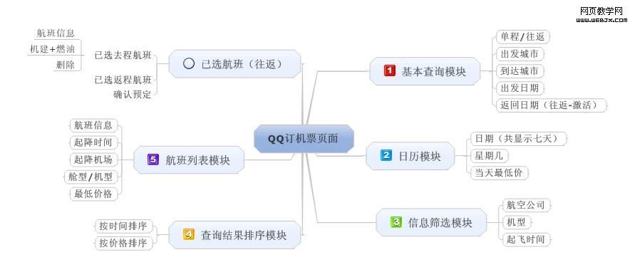 ok,下一步是输出线框图了,我的线框图输出,是结合对qq旅游的机票页面的交互测评进行的。