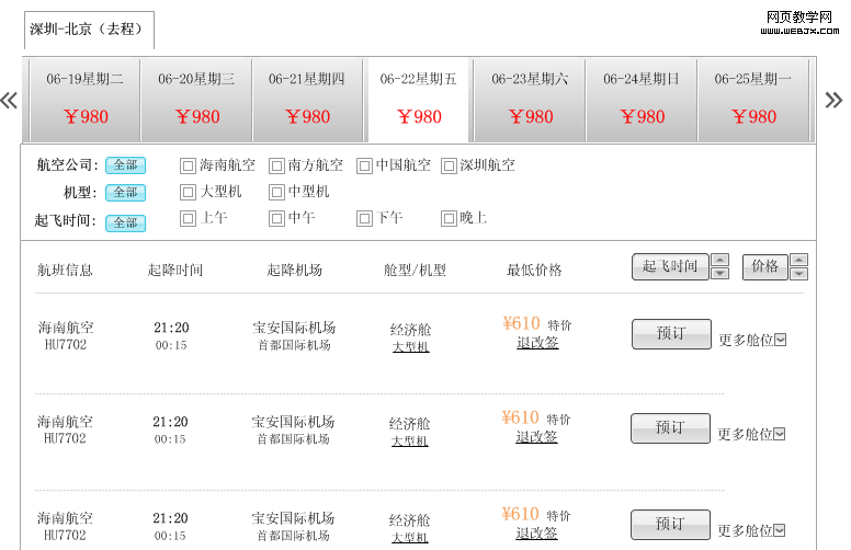 一个位置提供了五种信息:价格、折扣、活动、退改签查看、全部折扣选择,信息过多,造成疲劳和丢失;