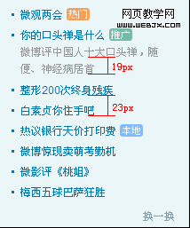 由于该模块对行高的重置,已经“约定”好了,文本规范的行高是18px。通过沟通,设计师认可将本段落的行高由19px改为18px。但这仅限于标题与描述文字之间的行距。而标题与标题之间4像素下边距,从构图上说明了单条话题之间的段落关系,不能一味的用18px行高解决。因为通过我们对设计稿的理解,设计师用这4像素,拉大了标题之间的间距,从视觉上形成了段落感。所以对于重构来讲,这4像素万万不能忽略,不然从视觉呈现的角度,设计师就不能容忍了。所以,有取有舍,方是领悟。