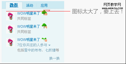 头像与名称顶端对齐,微群等级图标与微群名称底部对齐。