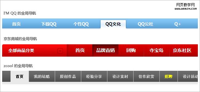 全局导航:是网站架构中权重最高的导航,统领整个网站的信息架构,决定网站形状和整体的信息分类,通常使用固定模式。