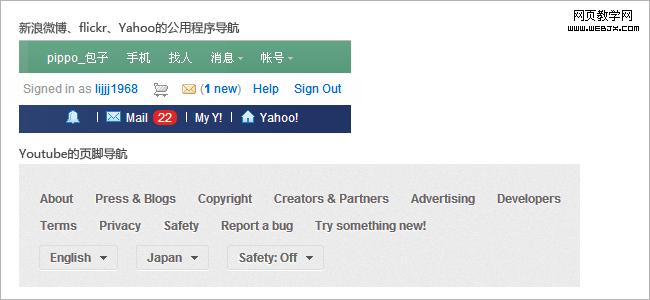 公用程序导航和页脚导航:这两类导航通常由全局性的操作链接构成,比如:退出系统、将用户引向帮助体系,或是实现同一家公司各种web服务之间的切换等。