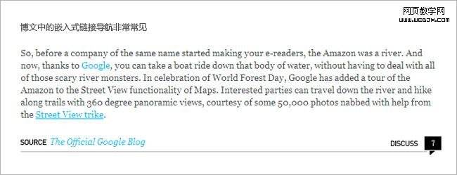 嵌入式链接导航:主要是根据上下文的内容以文字链接的形式扩展用户的信息量,或是帮助用户查找到信息的来源出处等。