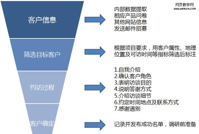 6. 路线安排——可事先计划好访谈路线,做出合理安排,如一天需要约访几名客户,尽量将距离较近的客户约在同一天,以提高效率。