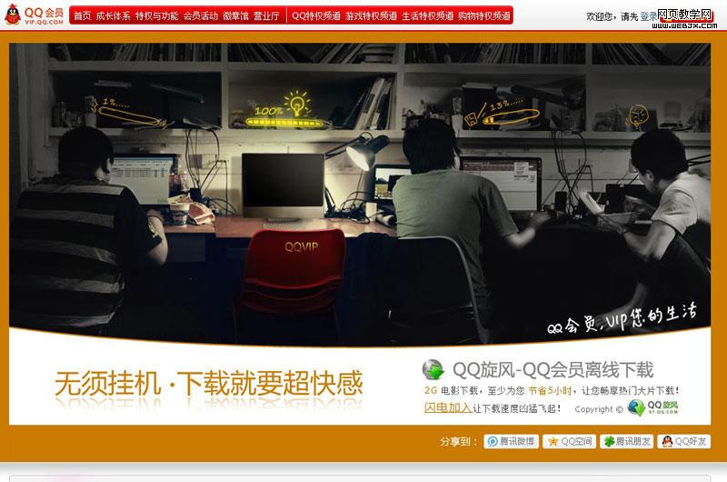 3 专题头部图片尽量控制在550px以内,以便保证在第一屏能显示出一部分商品,否则用户很可能误以为下面没有内容。腾讯刚刚推出的一个“QQ旋风离线下载”的专题(点击查看)就犯了这样的错误: