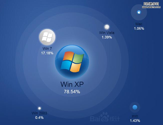 将生活情感化总结:对数据的规律进行总结,将生活的类似经验进行总结,运用到设计之中,赋予设计以情感。在操作系统市场份额报告中,用星系的概念来表现微软在操作系统这一领域的统治地位。