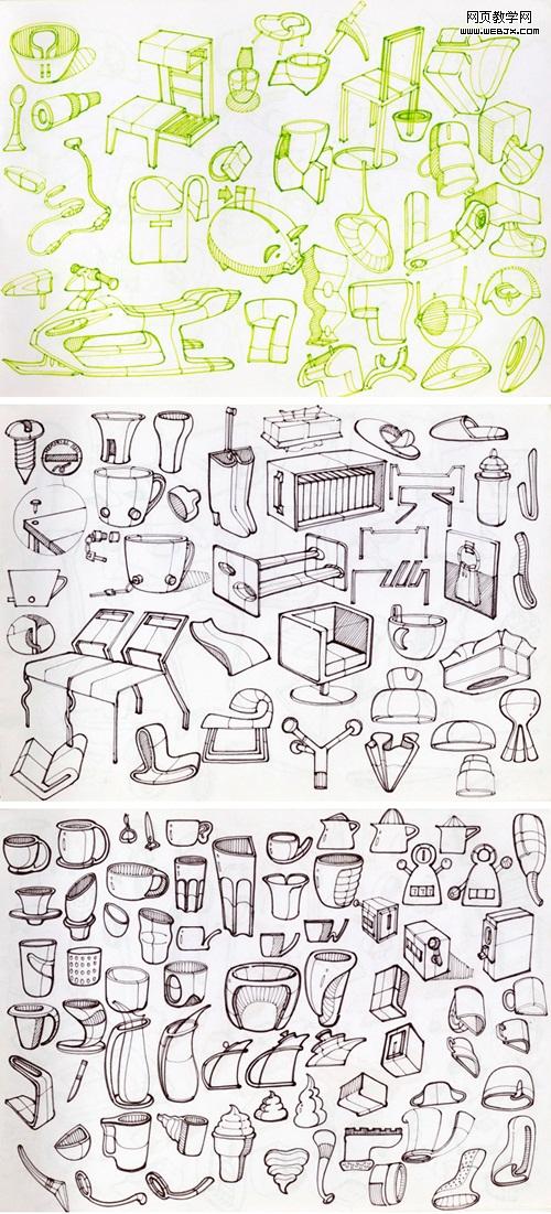 8. 聊聊设计本身吧,分享下最近做过的设计吧?在学校的时候,看你天天带着个绘图本,随手画草图,这个习惯是如何养成的?在各个阶段画的内容也会不同吧,比如早期重点连线条,熟练之后画造型等。