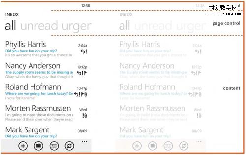 这点也与wp7现在metro的设计理念不谋而合,也是wp7主界面上那些“tile”让人觉得好用,眼前一亮的缘故:因为我们很容易扫描和理解。