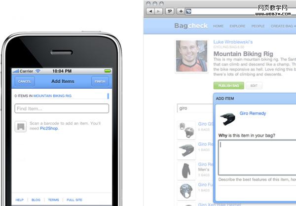 我们构建Bagcheck时使用的双重模板系统使得我们能够优化更长的交互,并且能够在我们的应用程序内部利用设备功能。在移动设备上我们启动了条形码扫描功能,这样子用户就可以使用手机内置的摄像机来识别物品。我们也重新组织了非线性列表创建工具(non-linear list creation tool),使其成为手机上一系列更为专注和短小的任务。